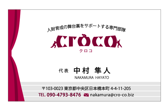 舞台裏の人々 カテゴリー: Logo Design クライアント/クロコ様 人材育成を”舞台の裏方の担い手”と捉えたキャッチコピーからイメージを膨らませ、ロゴと名刺デザインをさせて頂きました。 2021年2月18日